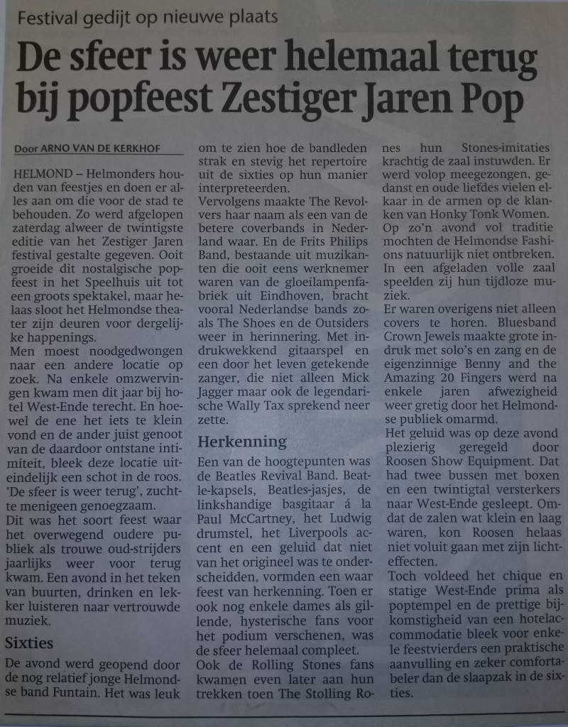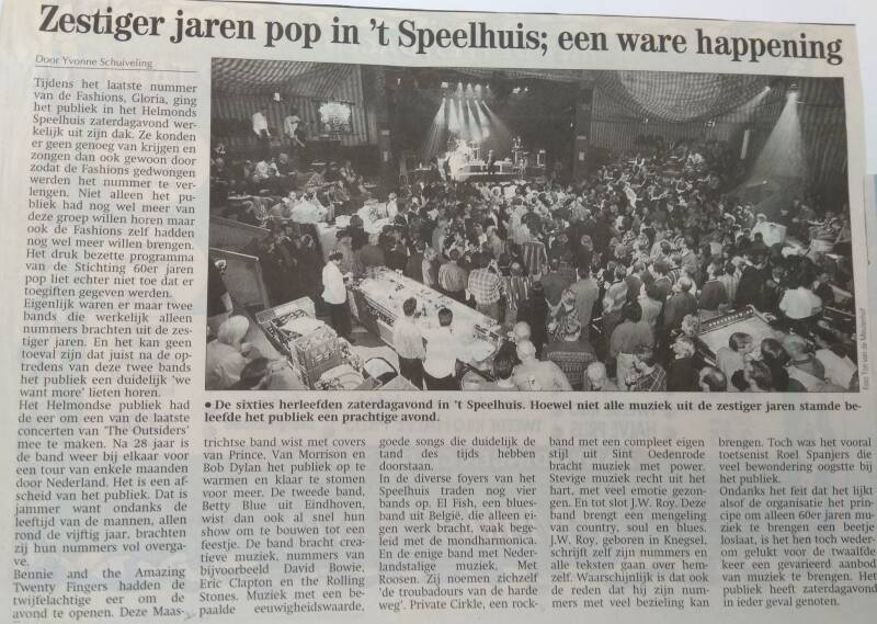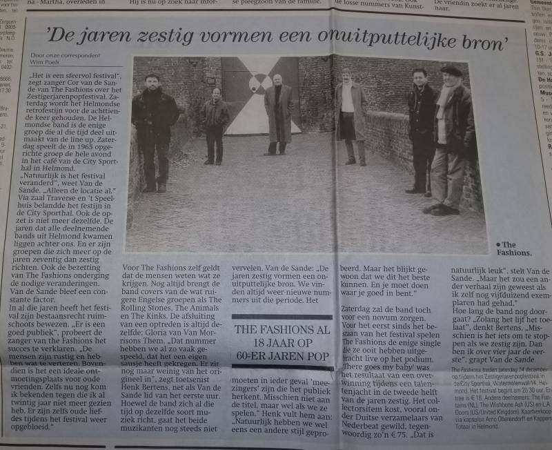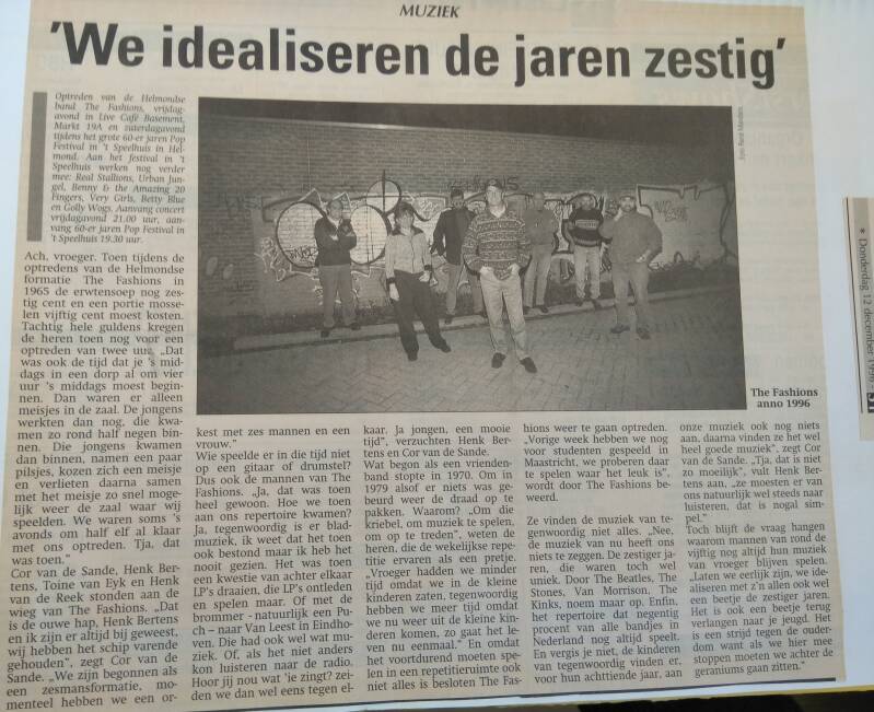 Het uitgaansleven in Helmond bloeide op. En een optredentje van The Fashions meepikken, bijvoorbeeld bij Zaal Van Vilsteren, was voor veel Helmonders het perfecte recept voor een leuk avondje uit. ,,Als je ten minste aan kaartjes kon komen. Die waren in een mum van tijd uitverkocht'', weet Annie Vriens nog.