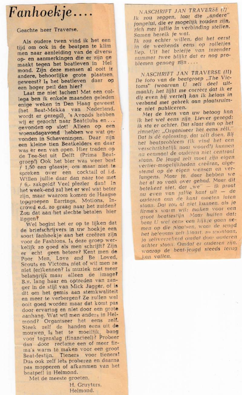 Ingezonden stuk in de rubriek Jan Traverse in het Helmond Dagblad in 1966